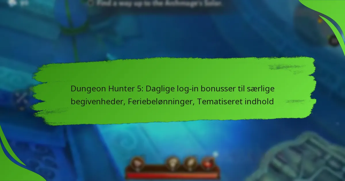 I Dungeon Hunter 5 belønner daglige login-bonusser spillerne for deres engagement i spillet ved at give værdifulde ressourcer, der forbedrer deres oplevelse. Særlige begivenheder påvirker disse bonusser betydeligt og tilbyder unikke belønninger, der varierer baseret på deltagelse. Derudover introducerer feriebelønninger eksklusive genstande og bonusser i festlige perioder, hvilket gør dem til et meget ventet aspekt af gameplayet.